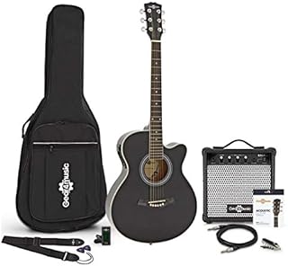Guitarra Electroacústica De Cutaway Individual + Paquete De Ampli De 15 W Negro