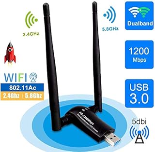 Maxesla Wifi Adaptador Ac 1200mbps Usb Wifi Receptor Dual Band 2.4g/5ghz, Wifi Antena Para Pc Desktop Laptop Tablet, Soporta Windows Xp/vista/7/8/10, Linux, Mac Os X (Wifi Usb 5dbi)