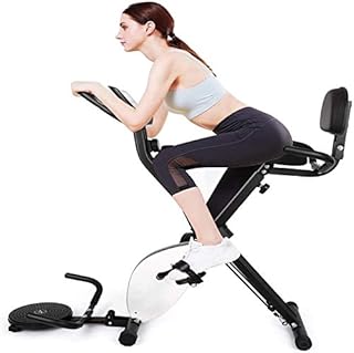 Ancheer Bicicleta Estática Plegable Bicicleta De Ejercicio 10 Niveles De Resistencia Magnética, Con App, Soporte Para Tableta Capacidad De Peso:120kg (Negro + Respaldo)