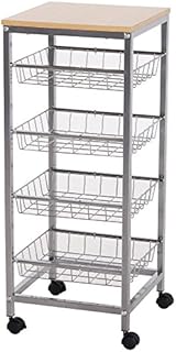 Homcom Carrito De Cocina Carro Multiusos De 5 Niveles Con Cajón Bastidores Laterales Cestas ExtraÃbles De Metal 4 Ruedas 47x37x83 Cm Madera Natural