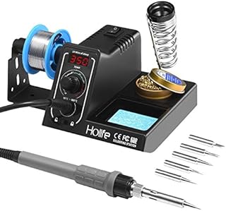 Estación De Soldadura, Holife 60w Digital 90-480℃ Kit Del Soldador Eléctrico Con 5 Pcs Puntas , Hilo De Estaño, Pantalla Led, Suspensión Automatica, Soldador Hierro Del Esd, Bloqueo Temperatura