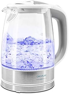 Cecotec 350 Thermosense Clear - Hervidor De Agua Eléctrico, 1,7l, Vidrio Borosilicato, Libre De Bpa, Base 360º, Luz Led, Filtro Antical, Doble Sistema De Seguridad, 2200 W
