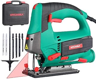 Hychika Sierra De Calar 800w, Corte En Madera: 110mm, 800w 800-3000spm, Velocidad Ajustable (1-6), 4 Modos De Corte, Corte -45º A 45º, Caja Magnética De Hoja, Cortar Madera Metal Plástico
