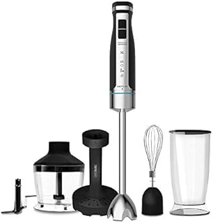 Mellerware Robot 1000 Inox Batidora De Mano, 1000 W, Acero Inoxidable. Vaso Mezclador, Varilla Mezcladora. Accesorios Incluidos. Velocidad Regulable Función Turbo