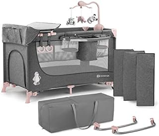 Kinderkraft Cuna De Viaje Joy, Transporte Fácil, Plegable, Con Accesorios, Rosa